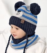 ( ilość produktów: 877 )Zimowa czapka i komin dla chłopca, Devin, granatowy + szary, 46-50 cm