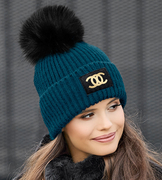 Czapka damska zimowa, elegancka, z pomponem, Gamda, turkus ciemny, 55-57 cm