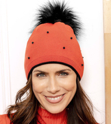 Czapka Damska z Wełny Merino i Kaszmiru z Pomponem z Jenota, Cavilla, czarna, 55-57 cm