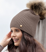 Elegancka czapka damska zimowa, wełniana, Jenova, beżowy ciemny, 55-59 cm