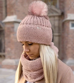 Czapka z pomponem i komin, damski komplet zimowy, Mauricia, rozm. 55-57 cm