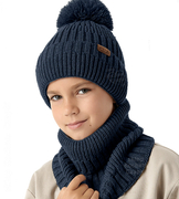 Czapka i komin dla chłopca, Potrei, granatowy melanż + bordowy, 52-56 cm
