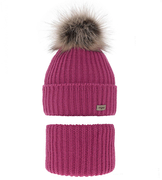 Zimowa czapka i komin dla dziewczynki, Liwow, ciemny różowy, 52-55 cm