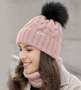 Czapka i komin zimowy, komplet damski, Vitona, brudny róż, 56-58 cm