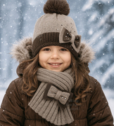 Czapka i szalik zimowy dla dziewczynki, merino 50%, Alina, beż+brąz, 50-52 cm