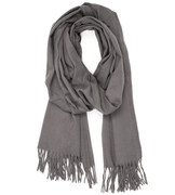 Szalik damski ciemnoszary cienki z frędzlami – miękki, poliestrowy, na jesień i zimę