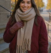Szalik zimowy damski, gruby długi szal 200 cm, 2503, jasny beż