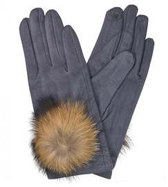 Rękawiczki damskie, dotykowe do ekranów, welurowe, szaro-niebieskie, rozmiar M/L