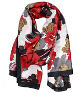 Szalik damski satynowy, chusta, czerwone kwiaty, 180 x 88 cm