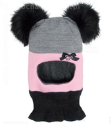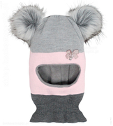 Czapka kominiarka dla dziewczynki, dwa pompony, szary+róż+czarny, Kejsa, 46-49 cm