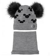 Komplet czapka i chusta dla dziewczynki, z pomponem, Fanny, szary + róż, 52-55 cm