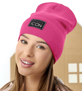 Czapka wiosenna-jesienna damska, z dzianiny w prążek, ciemny róż, Engera, 54-57 cm