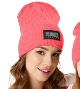 ( ilość produktów: 4370 )Czapka wiosenna-jesienna damska, z dzianiny w prążek, koralowa, BlogFash, 54-57 cm