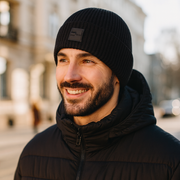 Czapka męska, wiosenna/jesienna, wełna merino, Ellfur, czarny, 55-57 cm