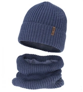 Czapka i komin dla chłopca, na zimę, 100% merino, Mogizzo, niebieski, 50-52 cm