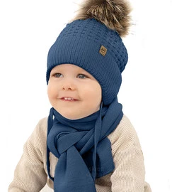 Zimowa czapka i szalik dla niemowlaka, niebieski ciemny (08) , Lassen, 42-44 cm