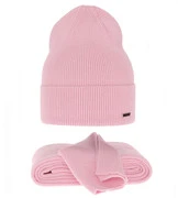 Czapka i szalik, merino 100%, Lemona, jasny różowy, 54-56 cm