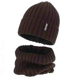 Czapka i komin dla chłopca, merino 50%, Nabasco, czekoladowy, 55-57 cm