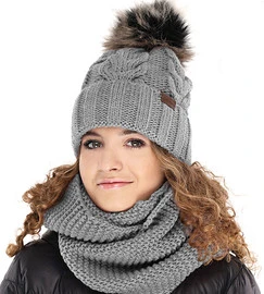 Czapka z pomponem i komin, komplet zimowy, Rotina, szary, 56-60 cm