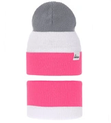 Komplet wiosenny-jesienny, dla dziewczynki, czapka i komin, różowy, Lesfie, 50-54 cm
