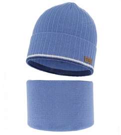 Komplet zimowy dla chłopca, czapka i komin, Sabilio, niebieski (08), 52-55 cm