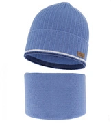 Czapka i komin dla chłopca, komplet jesienny/wiosenny, Noldon, niebieski, 50-52 cm