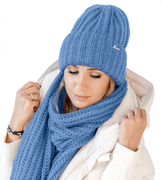 Czapka i szalik damski, modny komplet zimowy, Limda, niebieski, 56-59 cm
