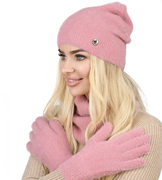 Czapka, komin i rękawiczki, damski komplet zimowy, Bernata, różowy, 55-60 cm
