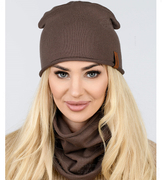 Czapka i komin damski, komplet wiosenny-jesienny, Mirandi, czekoladowy, 55-57 cm