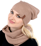 Dzianinowa czapka i komin damski, Nobia, kamel, 54-57 cm