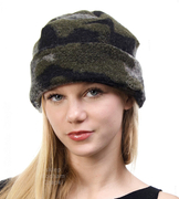 Zimowa czapka wełniana, damska, Fresha, zielona moro, 56-60 cm