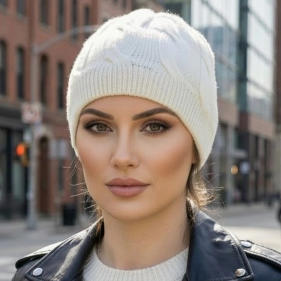 - Przejściowa jesienna/zimowa/wiosenna czapka damska z wełny merino i kaszmiru z warkoczowym wzorem. Lekka, ciepła i miękka – idealna na wiosnę/ jesień i łagodną zimę. Naturalna przędza zapewnia komfort i ochronę przed chłodem każdego dnia.