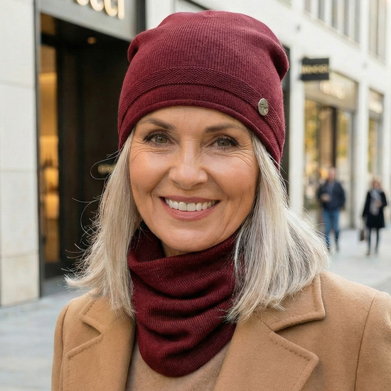 Czapka i komin damski, komplet wiosenny-jesienny, Reditta, bordowy, 55-60 cm
