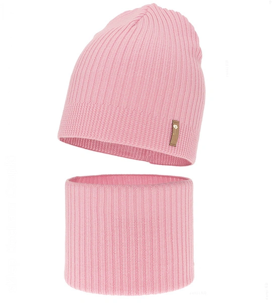 Opinie o Czapka i komin dla dziewczynki, jesienny/wiosenny komplet, 100% wełna merino, Siechel, jasny różowy, 50-53 cm