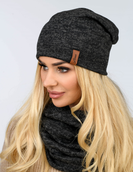 Czapka smerfetka i komin damski, komplet wiosenny/jesienny, na łagodną zimę, grafit melanż, 55-57 cm