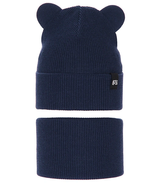 Komplet wiosenny/jesienny dla chłopca, czapka i komin, granatowy ciemny, Jragan, 50-54 cm