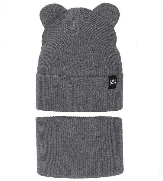 Komplet wiosenny/jesienny dla chłopca, czapka i komin, szary ciemny, Jragan, 50-54 cm