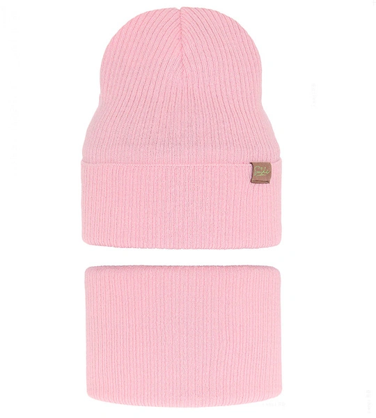 Komplet wiosenny/jesienny dla dziewczynki, czapka i komin, róż pudrowy, Olana, 50-54 cm