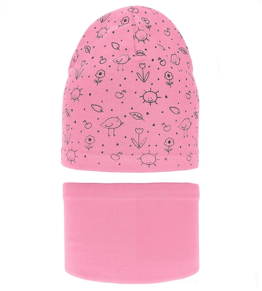 Komplet wiosenny-jesienny, dla dziewczynki, czapka i komin, różowy, Nesja, 50-53 cm