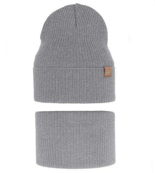 Komplet wiosenny/jesienny dla dziewczynki, czapka i komin, szary, Olana, 50-54 cm