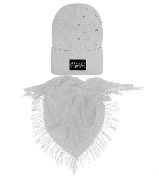 - Stylowy zestaw wiosenny/jesienny: czapka z ażurkowym wzorem w komplecie z dzianinową chustką. Wyjątkowo efektowny dla dziewczynek, które ubierają się modnie. Czapka typu beanie z podwinięciem i naszywką na czole.