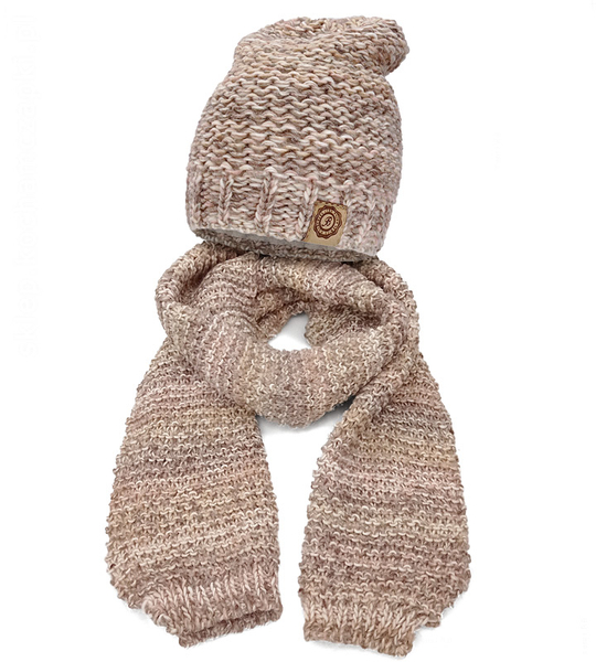 • Ciepły komplet na zimę składający się z czapki zimowej i długiego szala.