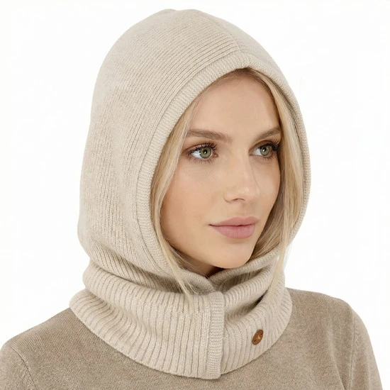 Balaklawa, komin z kapturem z wełny merino i kaszmiru, Rikana, beżowa, 55-62 cm