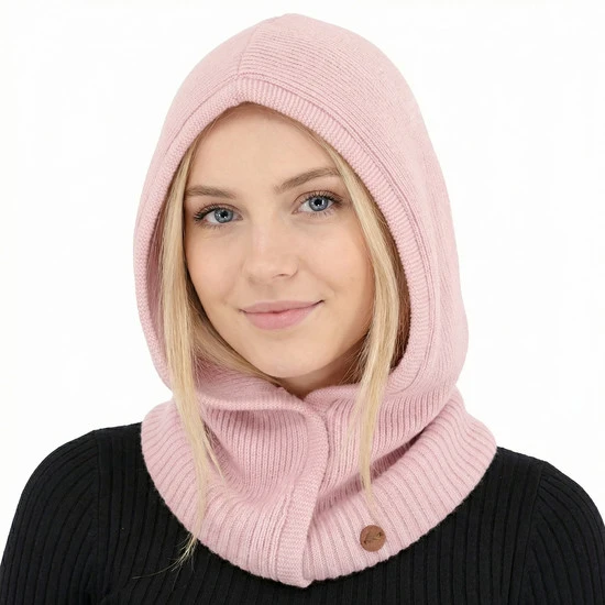 Balaklawa, komin z kapturem z wełny merino i kaszmiru, Rikana, różowa, 55-62 cm