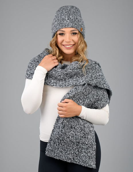 Czapka i komin damski, zimowy komplet, Jymaya, szary/czarny melanż, 55-57 cm