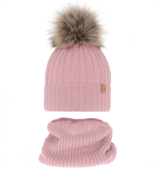 Czapka i komin merino dla dziewczynki, polar, Rimabel, różowy, 51-53 cm