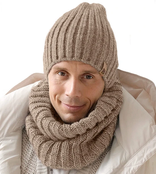 Czapka i komin zimowy męski, Jobrin, 2w1, beżowy (2), 56-62 cm