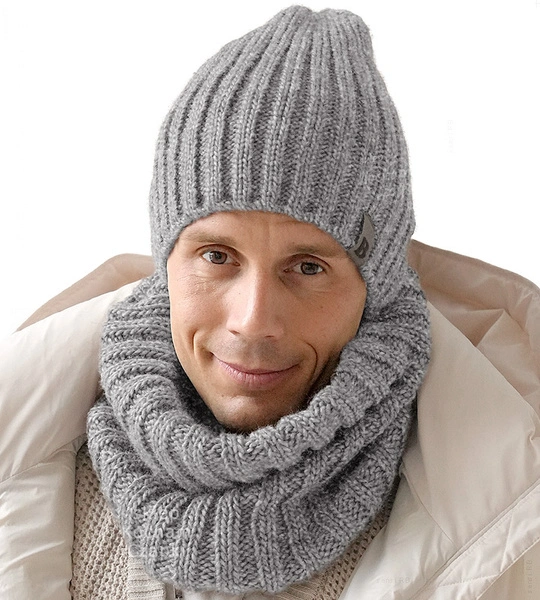 Opinie o Czapka i komin zimowy męski, Jobrin II, szary (03), 56-60 cm