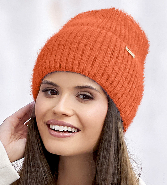 Czapka zimowa, damska, Makama, angora, pomarańczowy, 55-57 cm