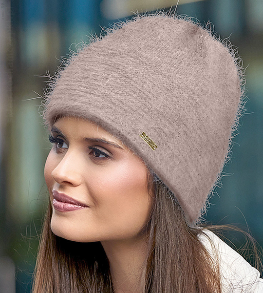 Czapka zimowa, damska, Shufu, angora, cappucino, 55-57 cm